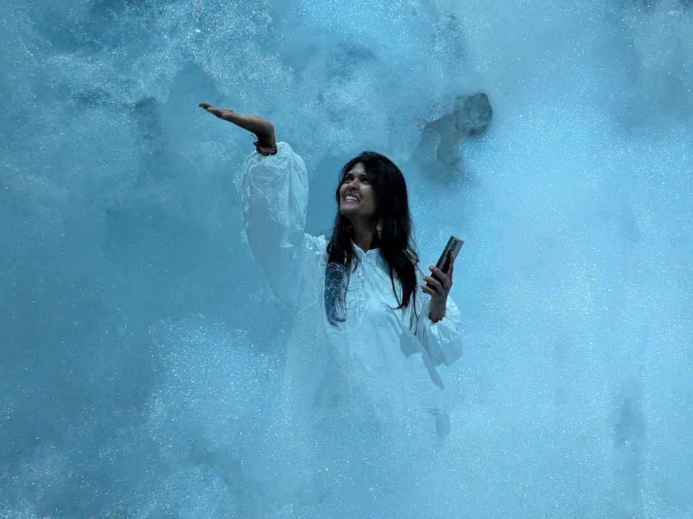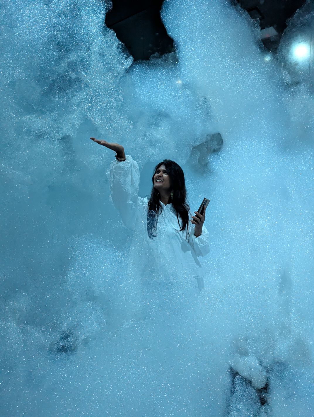 Its my wife who is enjoying the the immersive art experience called massless clouds. She seemed angelic the way she was enjoying the experience.