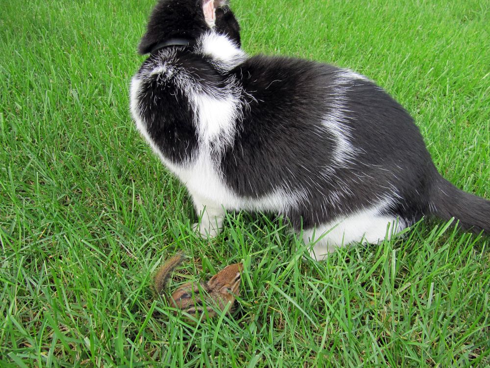 My cat and a chipmunk play hide and seek