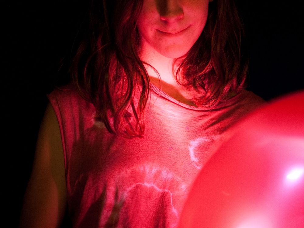 My daughter Emily at Fort Edward, NY Heritage Days with a flashlight and a red balloon.