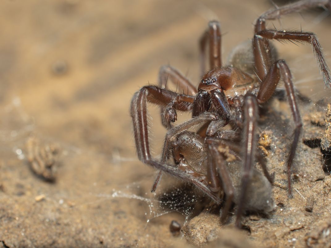 A large female spider consumes a much smaller male of the same species. I suspect this was her mate.