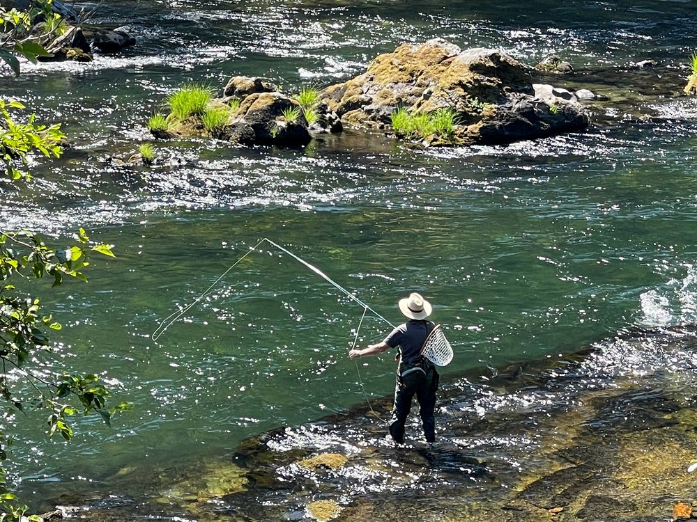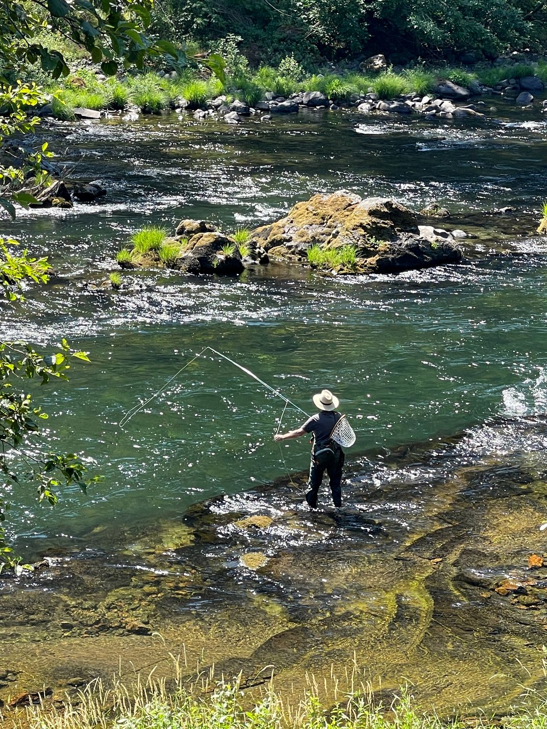 It is wonderful to see my husband enjoying himself. We are at Ideyld Park, North Umpqua River. The color of greens, the motion of him fishing just led to this moment.