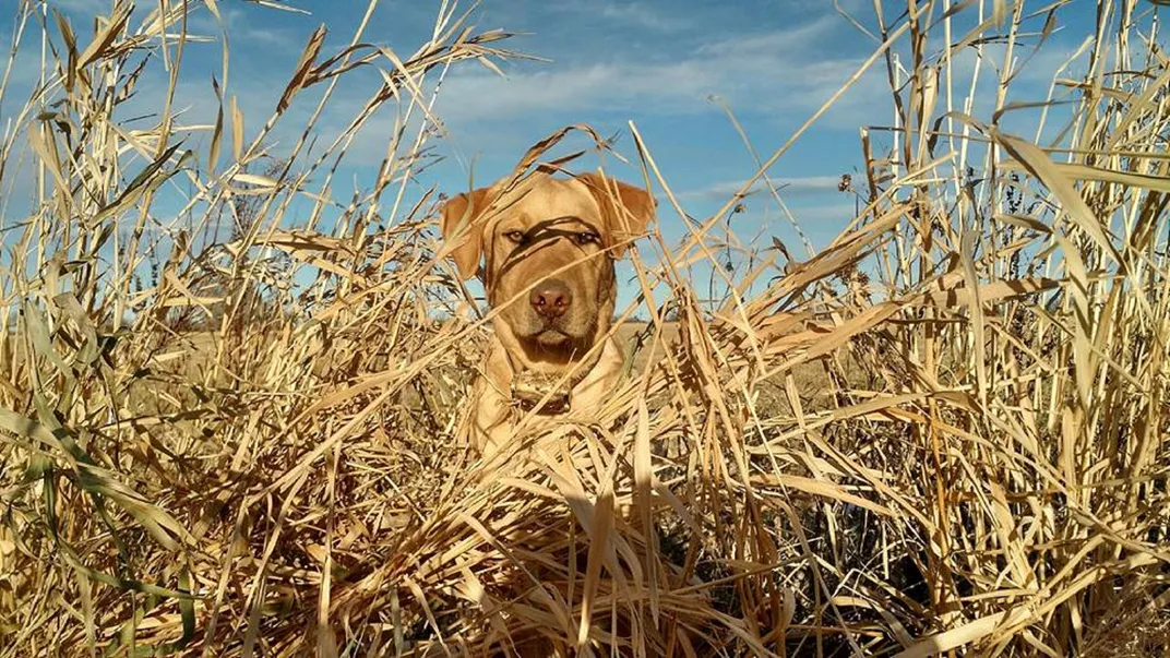 Hunting with my eight month old lab. can you see me?