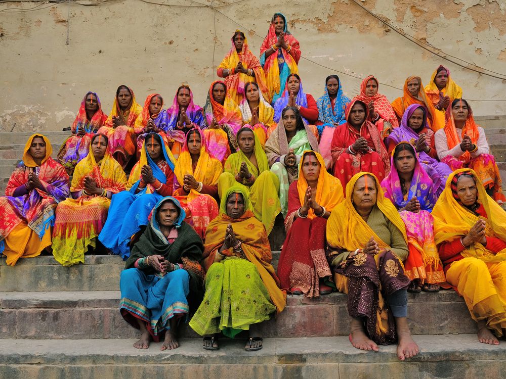 I shot these pilgrims on the ghats of Varanasi. I was stunned to see the colors of their sarees they were wearing that I offered to shoot a picture of them in a group and this came out.