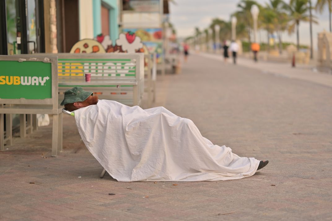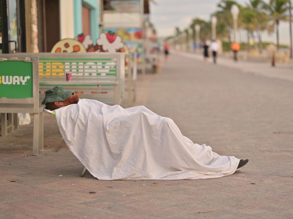 Man sleeping on street after a night partying.