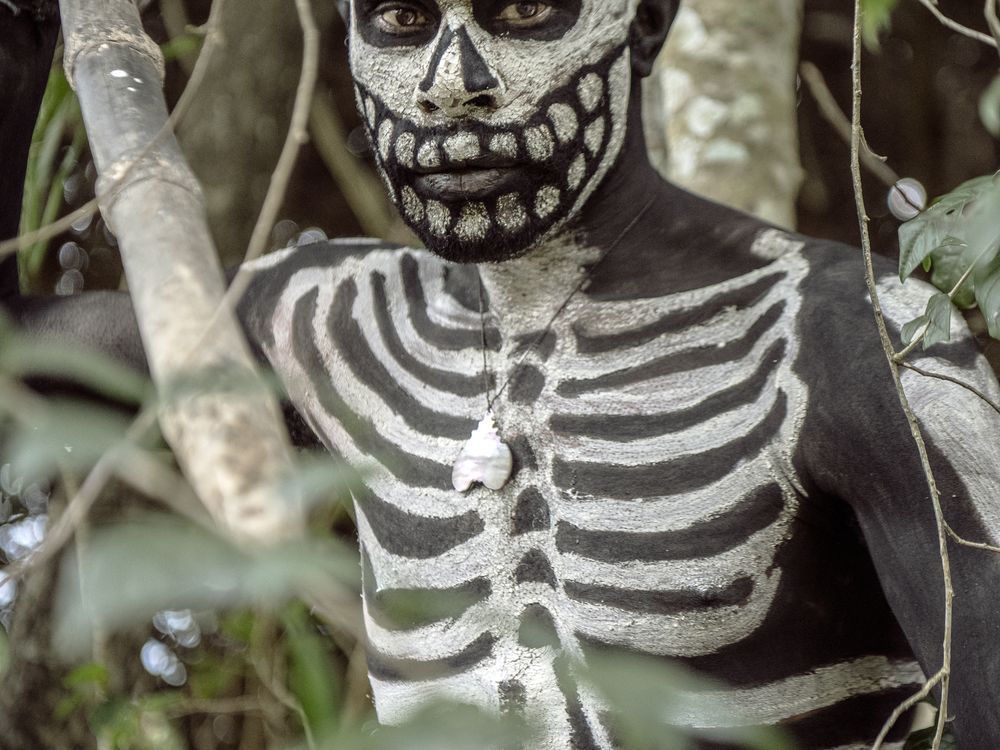 I was near Kundiawa in the Sumbu Province with the Narku Tribe of Bamug Village. They believe a ghost named Omo Masalai lives in a nearby cave and comes out to kill their innocent wives and men on hunting trips. I witnessed a skeleton dance in which the tribes ancestors protect the tribe from the ghost.