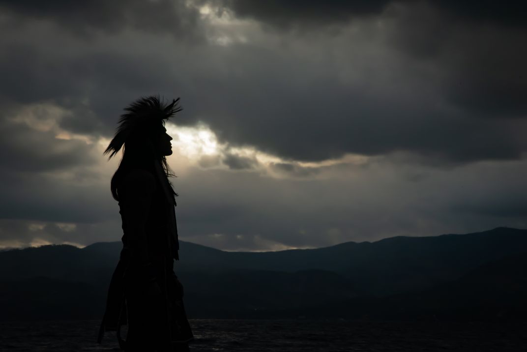 Silhouette of Native American Jonas Rydell with Roach Headdress