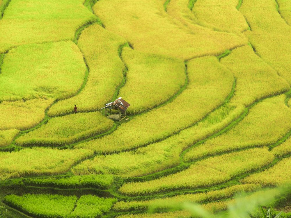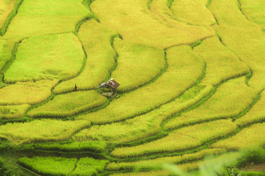 This photo is showing the large rice field at Solok, West Sumatera, Indonesia. As we know, Solok is one of the most popular city that produce the best rice quality in Indonesia. People there, earn living by farming, paddy or vegetables. Solok is located near to a stratovolcano mountain, Mount Talang, and the soil is very fertile.