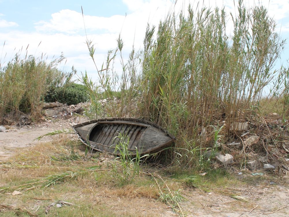 Nature reclaiming a forgotten vessel in La Albufera National Park.