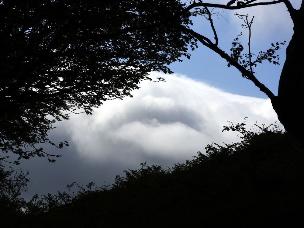 WHILE PASSING BY I SAW THIS SCENE WHERE I FOUND AS IF THE CLOUDS ARE MERGING WITH LAND.