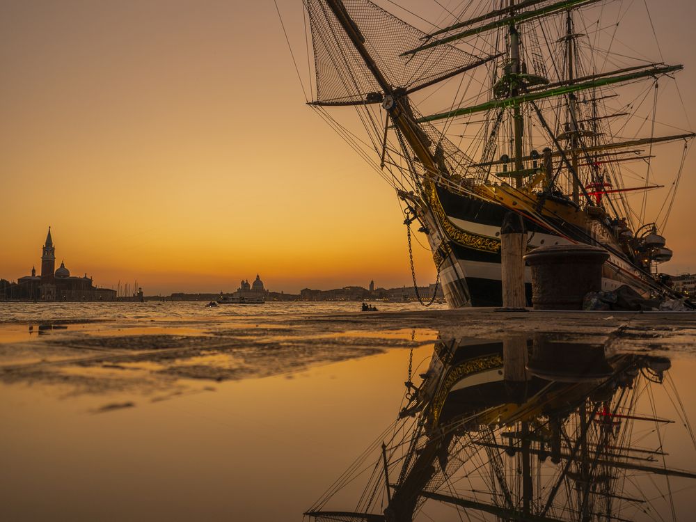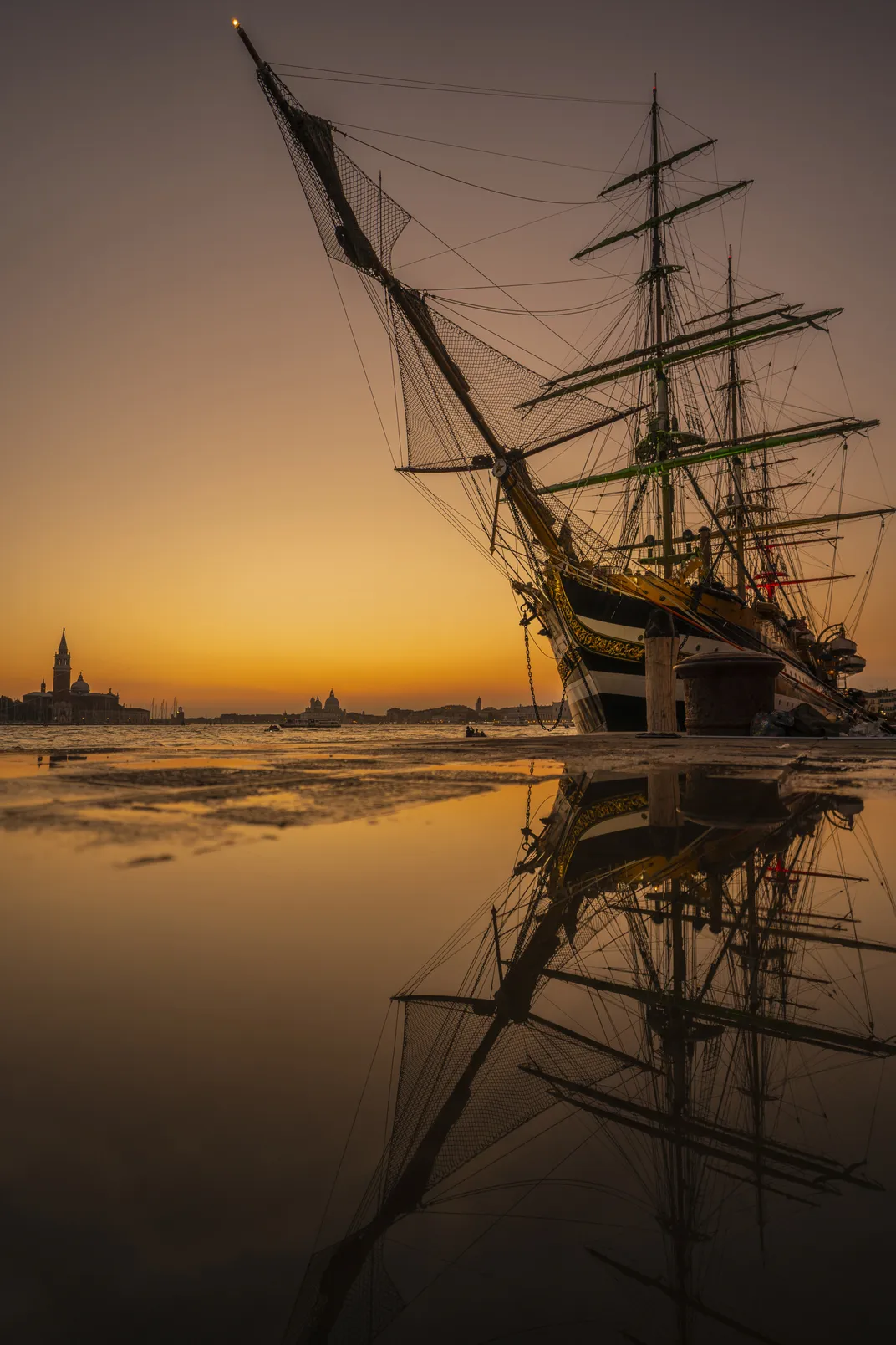 Ottobre 2022, avevamo una festa di laurea e ho saputo che era ormeggiata a Venezia questa nave meravigliosa. Non l'avevo mai vista dal vivo. Corro subito per provare a fotografarla. Arrivo. E' il tramonto e vedo una pozzanghera formatasi con il mare agitato nella banchina. mi inginocchio e cerco di prendere tutto il riflesso e catturo questa foto che raffigura la nave in tutta la sua magnificenza con sfondo Venezia.