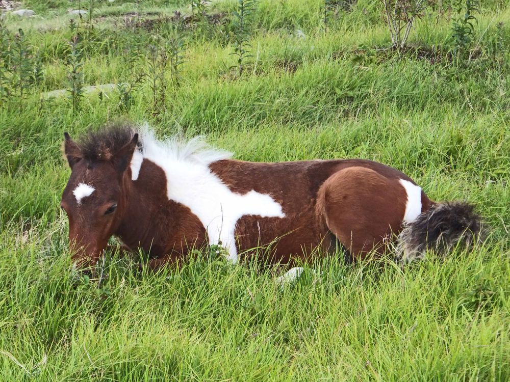 New Foal in herd of wild ponies on the Appalachia Trail Mt Rogers wilderness area Southwest Virginia