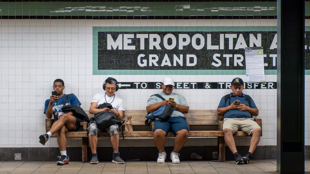 While waiting on the opposite subway platform, I snapped a photo of the men, all on their cell phones, sitting across from me. I could not help but think this represents the American experience for so many people in the U.S. today.
