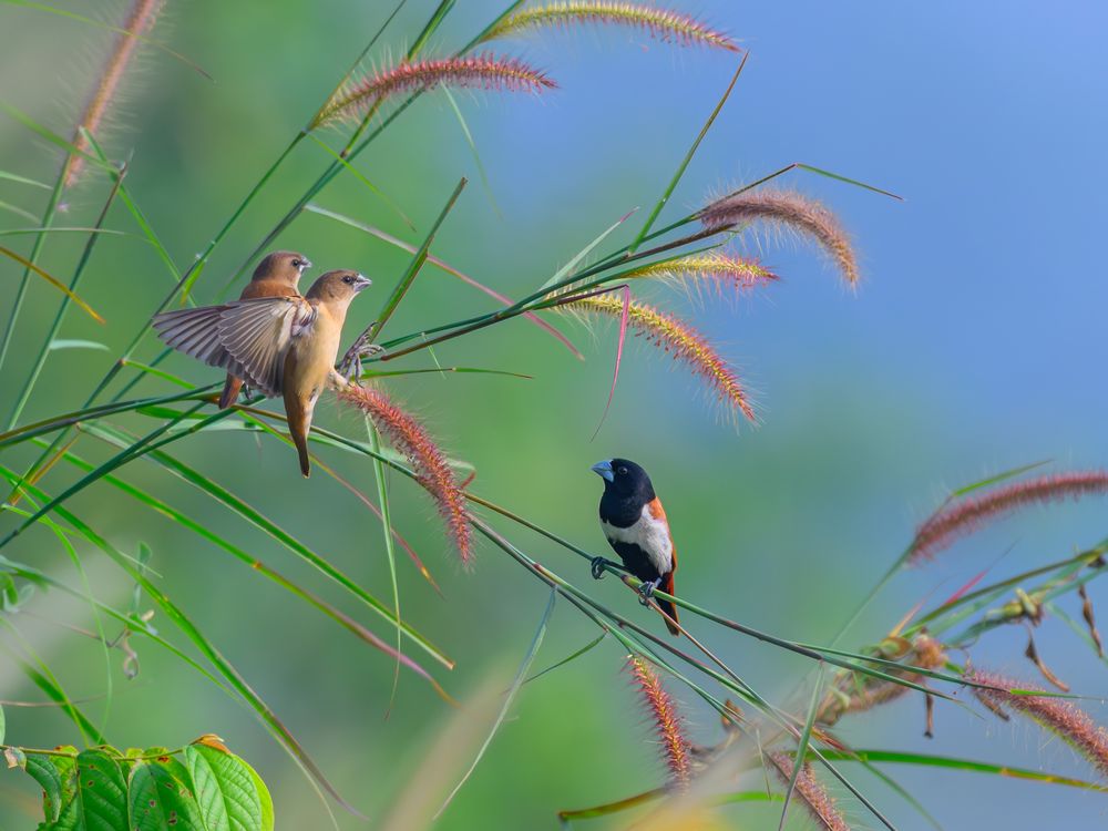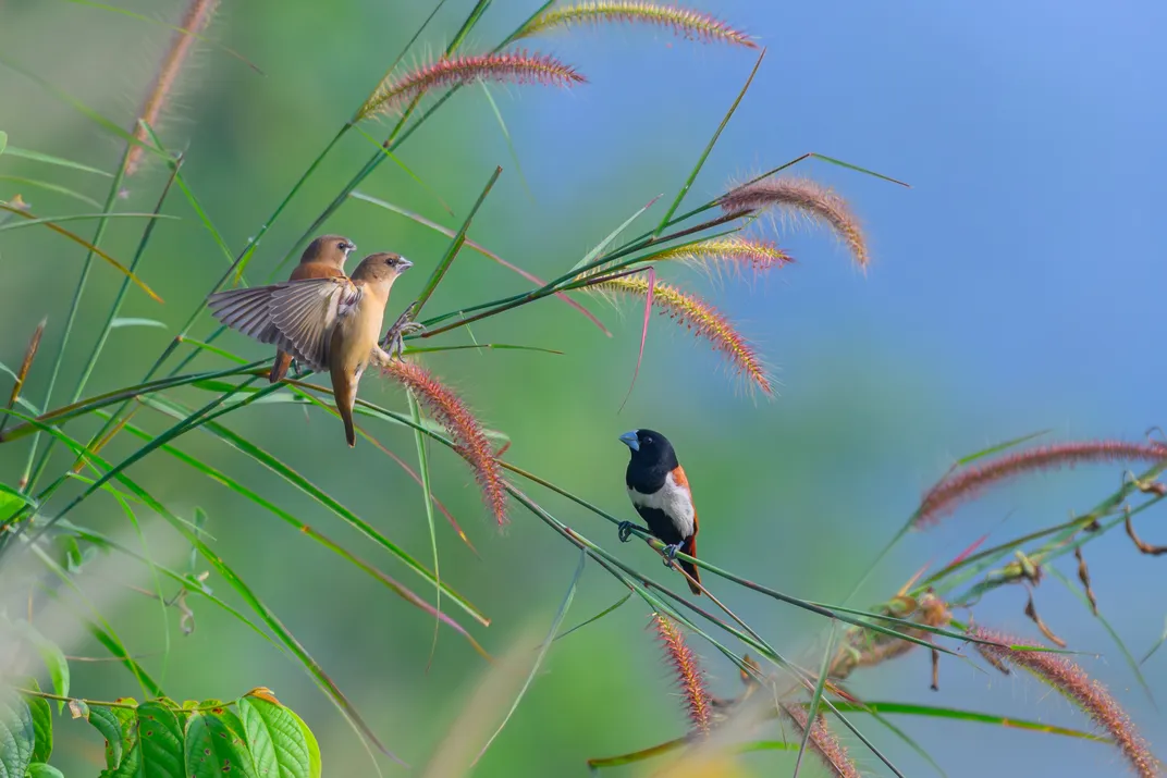 This was an accidental image. Its rear to find these birds during those time of that particular day. As i consider early morning time to be an ideal choise to sketch these small birds, at first i was so disappointed and then luckily as i walk back to home got these pair and an odd. I was just started from home to see this beautiful birds. These are scaly breasted munia and tri coloured munia.But both birds which flaps the wings and the one differnt from each other watching was a sight which makes me wonder.