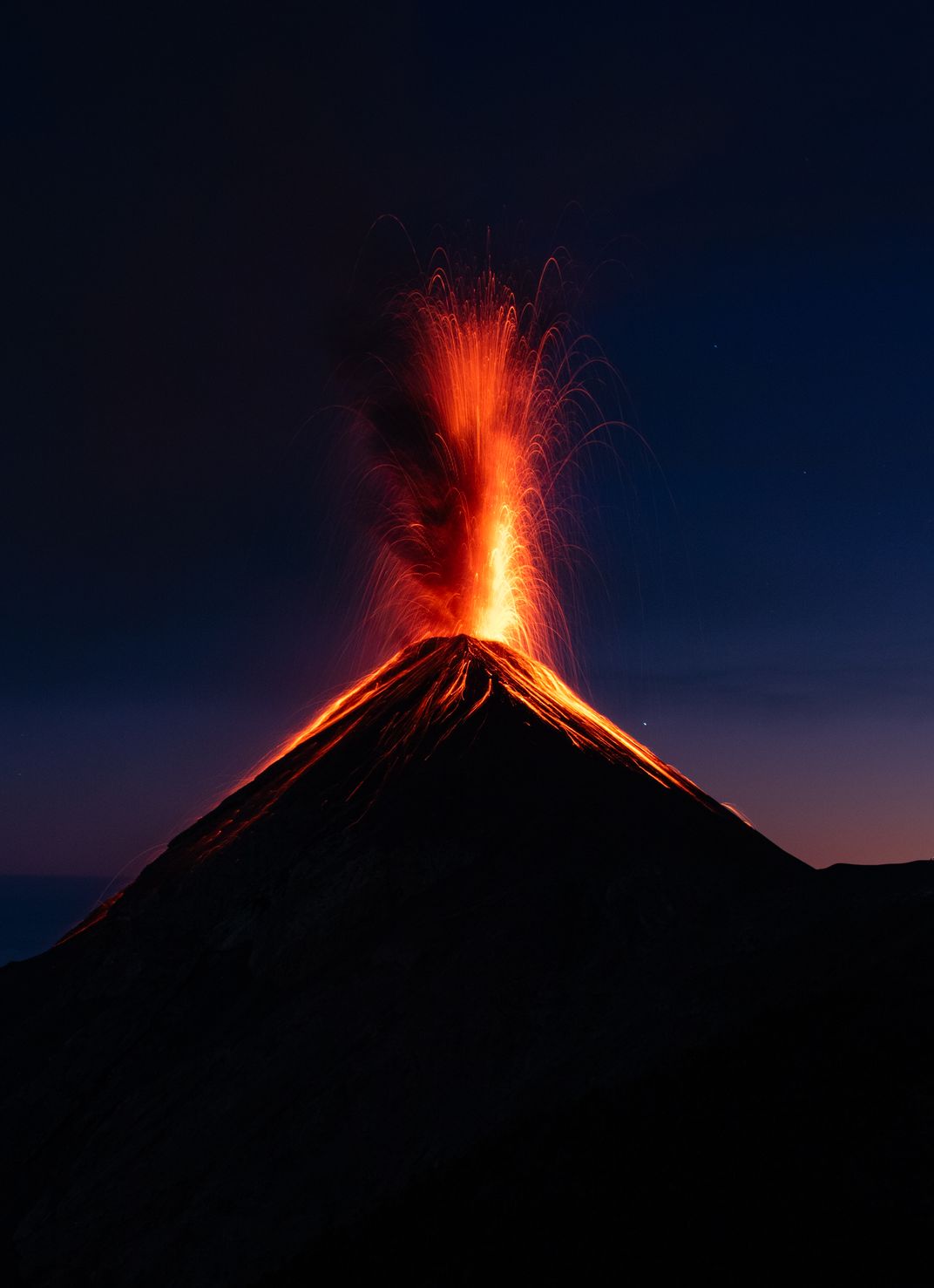 Eruption of Fuego Volcano, one of Guatemala’s most active and unpredictable giants. Photographed from the slopes of Acatenango, while we ere on a photography trip to try capture the lava of the volcano, as fire and ash rose into the night.