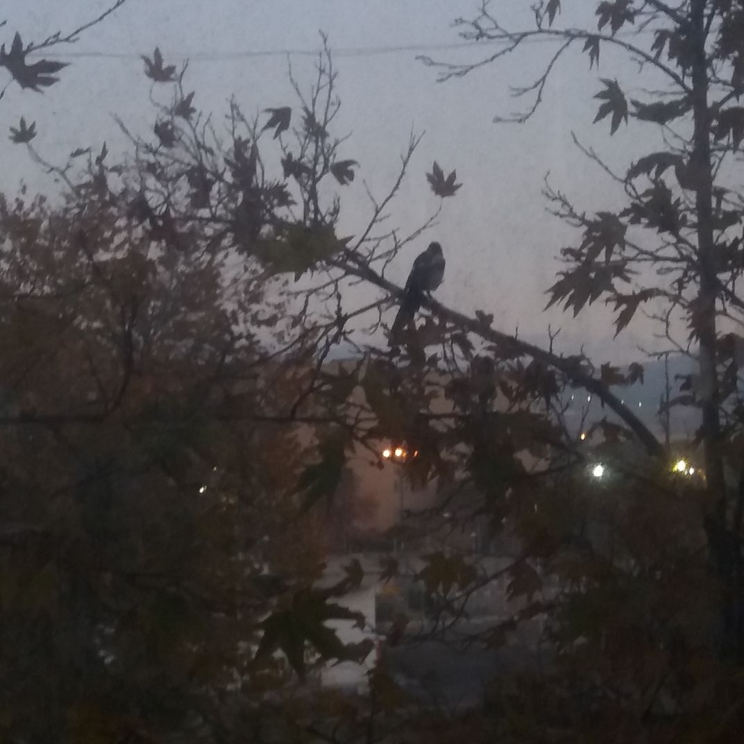 The crow sat on the branch and didn't move. It was staring at the people. The cold evening of that day, more than ever, was the time to return to the nest, but the crow didn't move. It was as if it had noticed something in the people that was keeping it from flying. If it wanted to, it could, but...