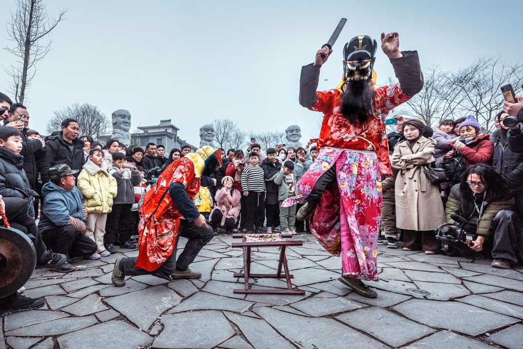 On the 16th day of the first lunar month, Shiyou Village welcomed the highlight of the Nuo Dance performances—the 'Sou Nuo and Yuan Nuo' ceremony. People from all directions came in a continuous stream to personally experience the unique charm of this national intangible cultural heritage. Photographed on February 25, 2024, in Shiyou Village, Sanxi Township, Nanfeng County, Fuzhou City, Jiangxi Province, China.