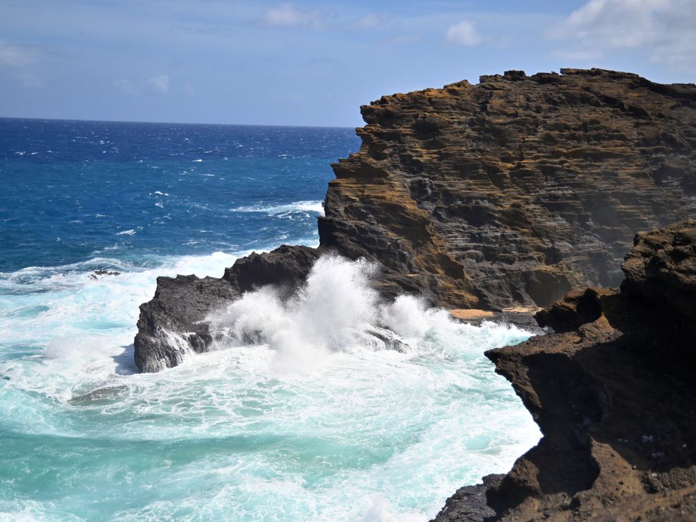 Created thousands of years ago by molten lava tubes, the Halona blowhole propels water into the sky with the waves