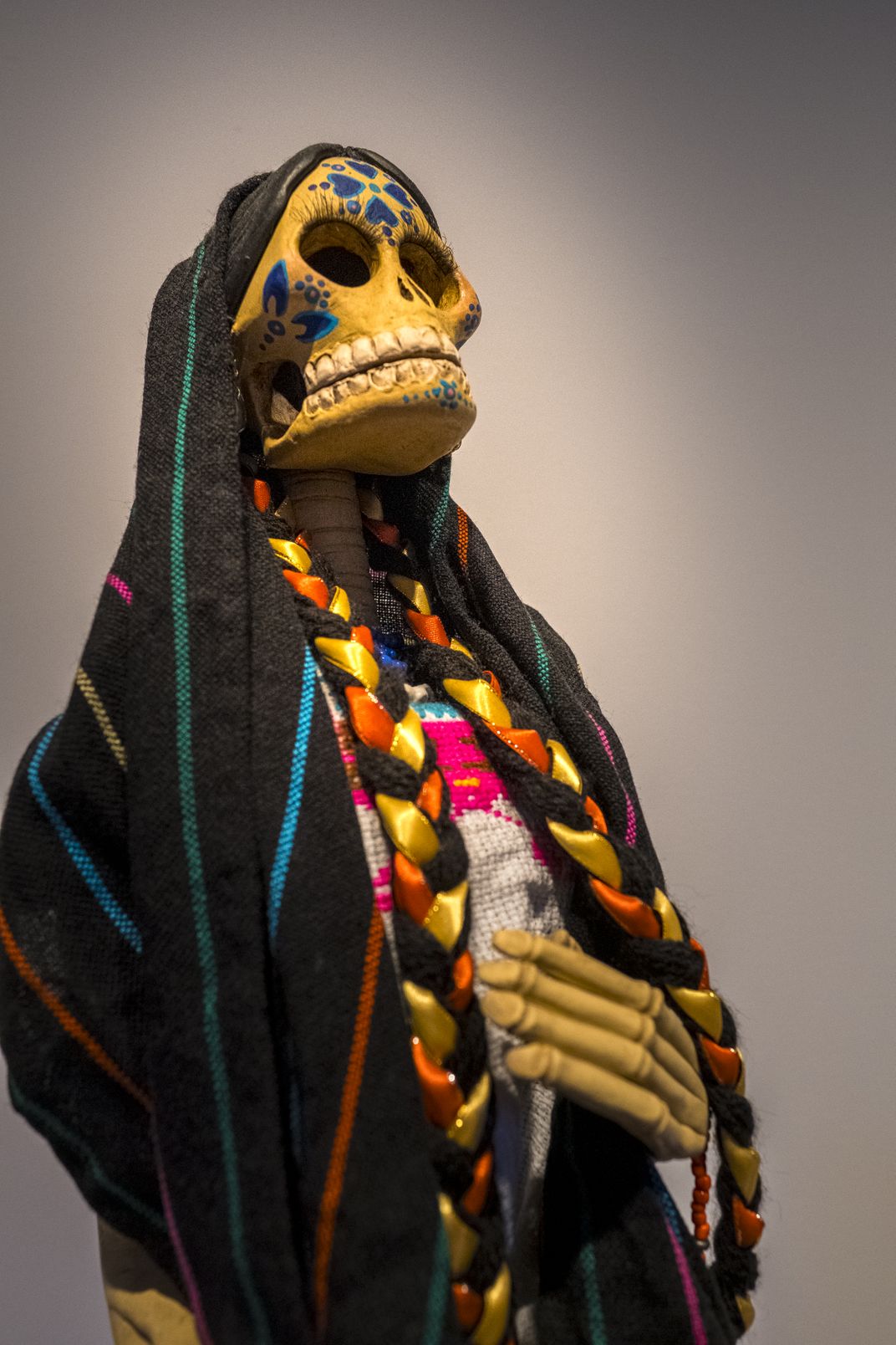 Close-up of the Altar de Muertos at Fundación Casa de México, Madrid: vibrant cempasúchil, symbolic foods, and rich texture and color. I aimed to honor its cultural artistry and reverent spirit—an intimate portrait of remembrance and devotion.