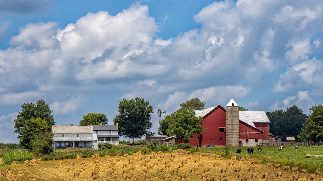 Ohio Amish Country Bucolic Farm Scene was taken on the outskirts of the world's largest Amish population in Ohio. I've driven by this location many times on my way to my photo club meetings and have patiently awaited a decent sky. Fortunately, I was rewarded recently with a beautify partly cloudy sky and wheat shocks providing a wonderful foreground element.