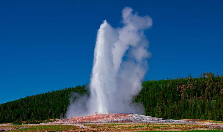 Old Faithful on a beautiful spring day.