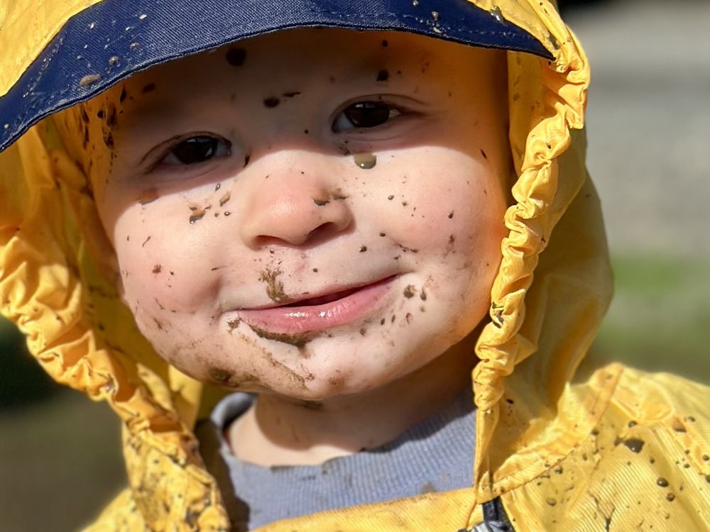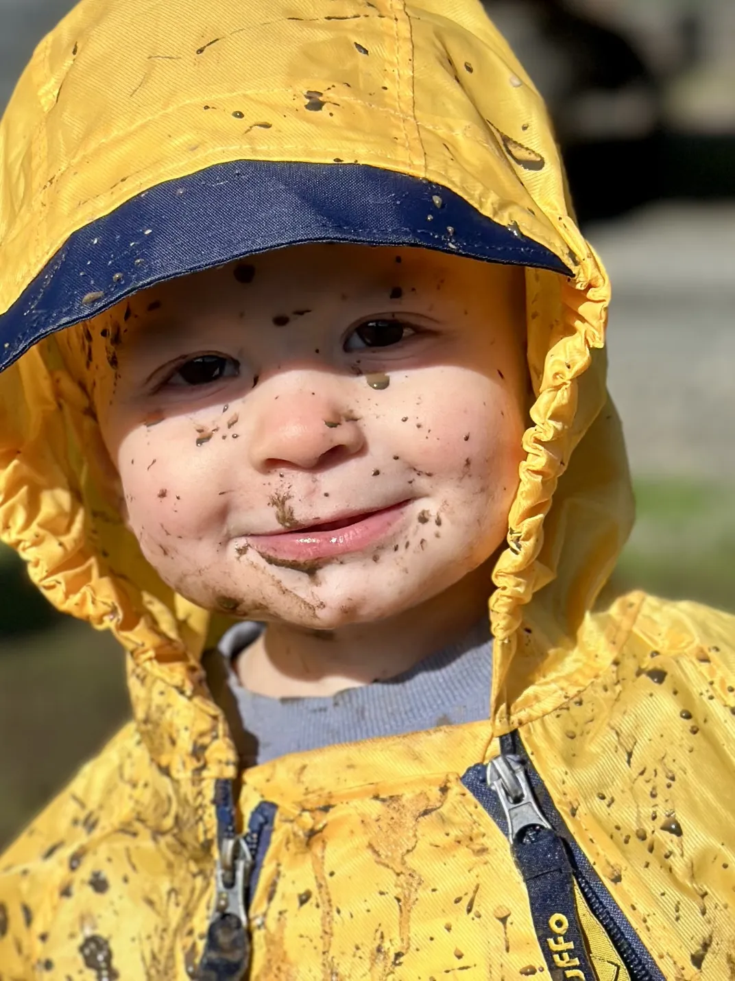 Rainy day sunshine leads to old fashion fun with joyous puddle stomps.