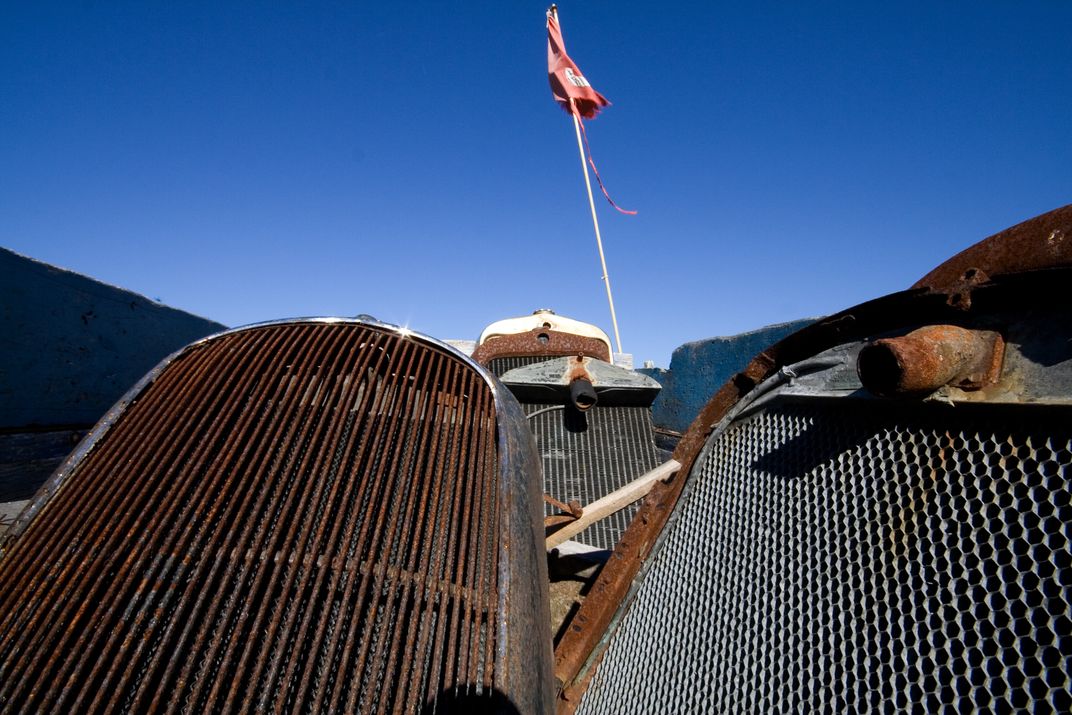 Old radiators & grills on a bright fall day.