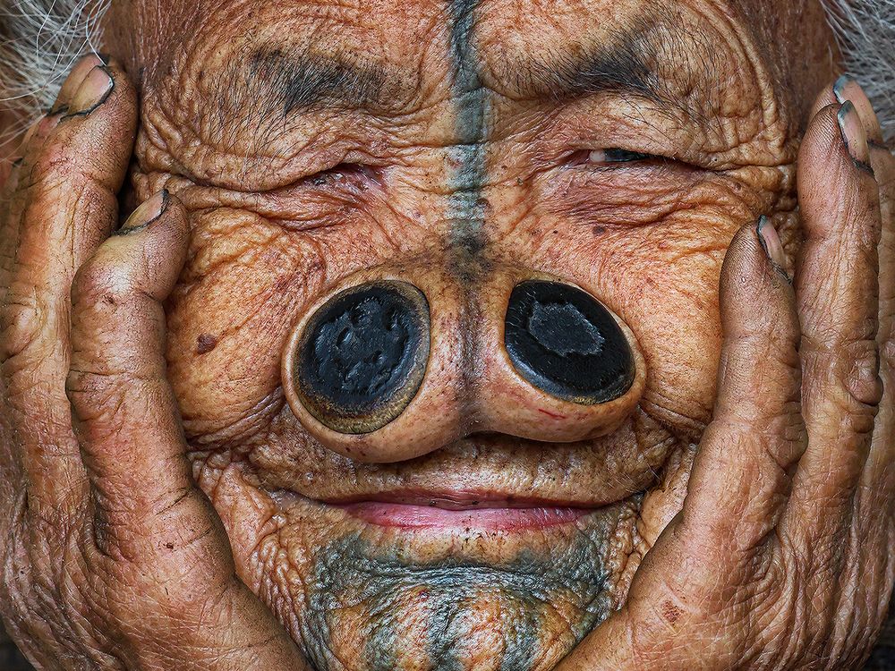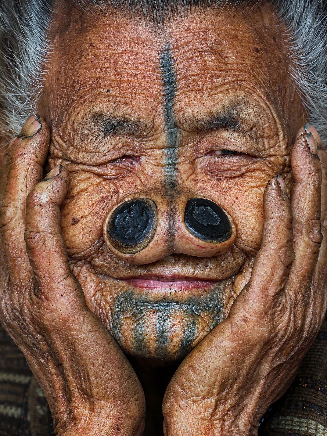 Apatani grandmother. The ancient practice of facial tattooing was banned in the 1980s.
