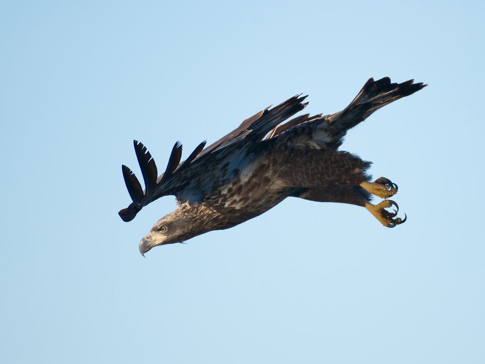 A young bald eagle has his eye on a fish in Wolf Lodge Bay of Coeur d'Alene Lake near Coeur d' Alene, Idaho