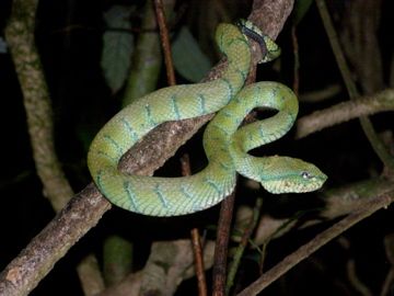 On a night walk in Bako National Park I found this green-pitted viper hanging out in a tree waiting for a meal to walk by.
