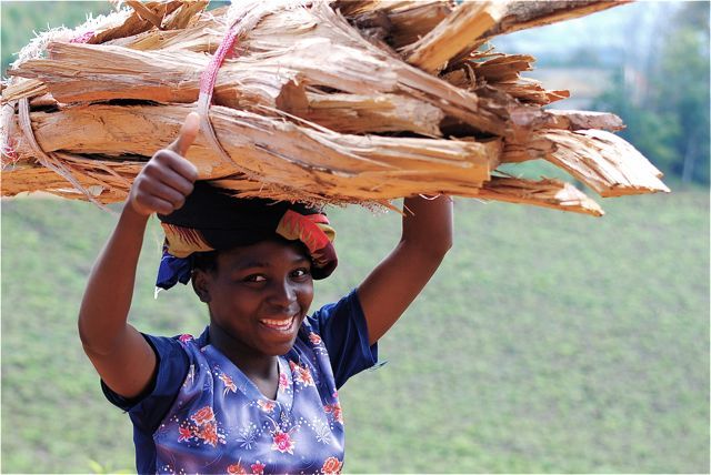 On the Lujeri Tea Estates, a girl does her chore of carrying firewood to the owner's home.