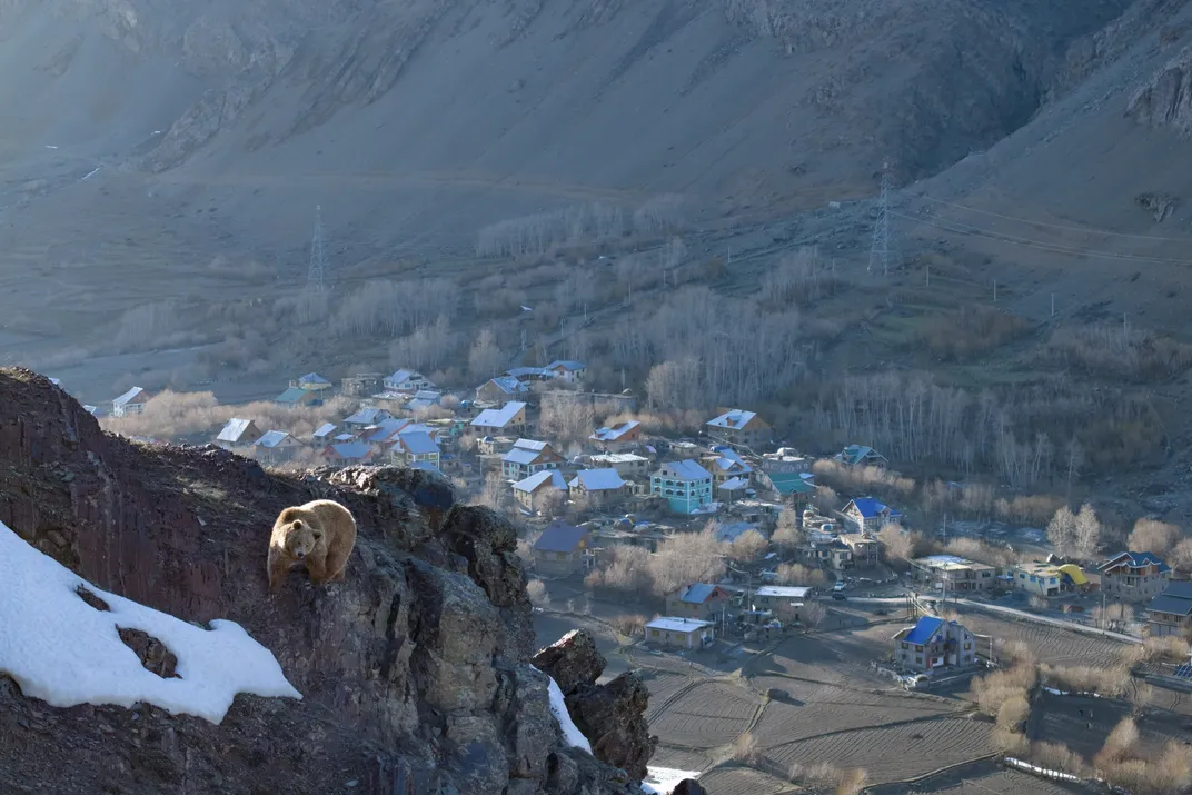 On the precipice overlooking a Himalayan village, a brown bear pauses—standing at the literal and figurative edge of its shrinking world. In these borderlands the line between wilderness and human presence is rapidly fading. The Himalayan brown bear, now finds itself at the boundary of its vanishing habitat, with human habitation expanding deeper into the mountains. Is this the face of coexistence—or the prelude to conflict?