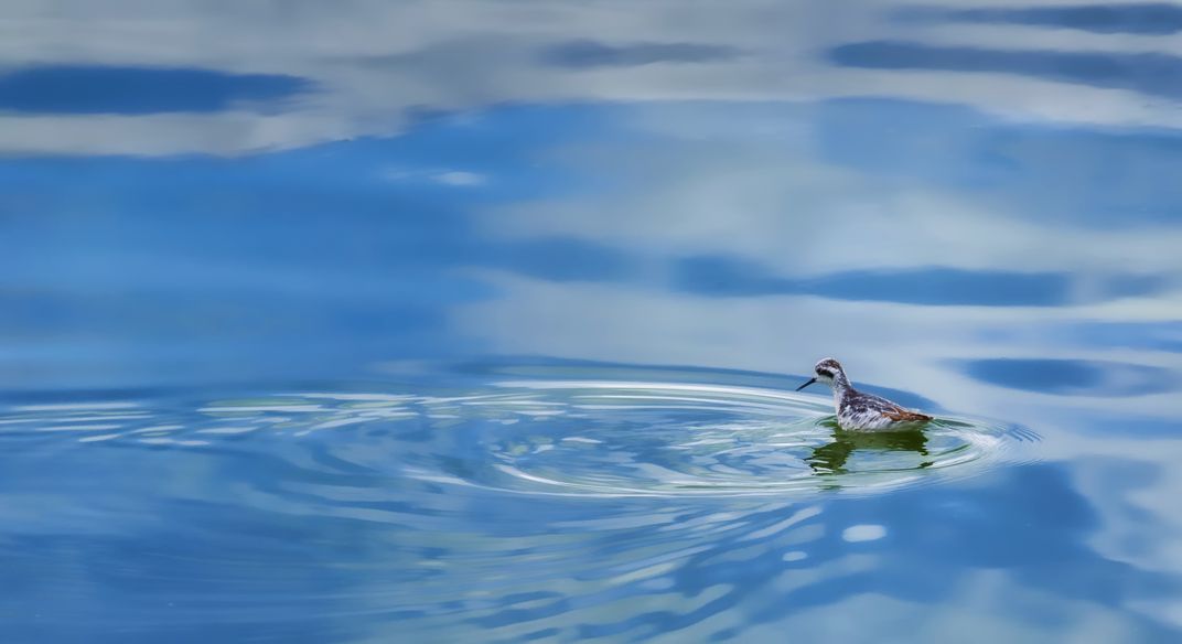 Monolake is an oasis in dry great basin that attracts a large number of migratory and nesting birds. Monolake offers an tremendous birdwatching opportunity as shorebirds often come close to the land and viewers. One such example is this small birds floating in circles while looking for food.