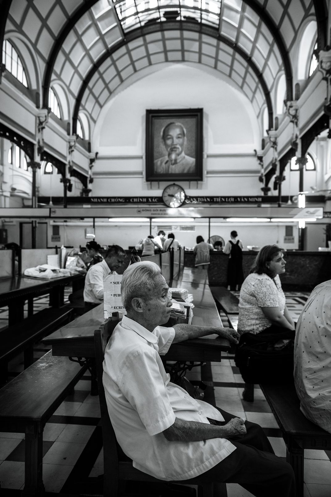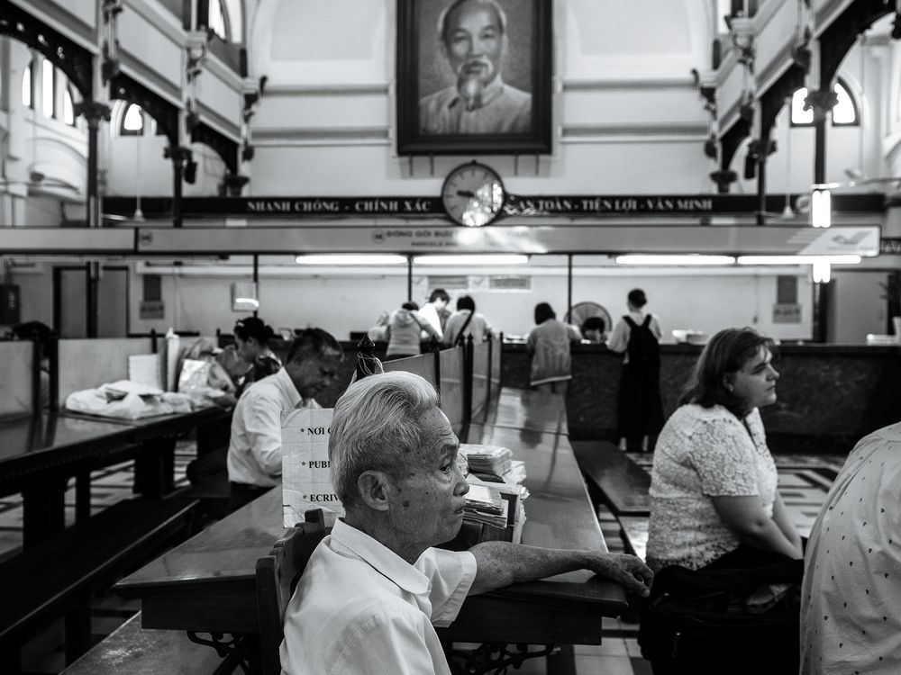 The oldest writer in Saigon Central Post Office. The Post Office was constructed between 1886-1891 in Ho Chi Minh City.