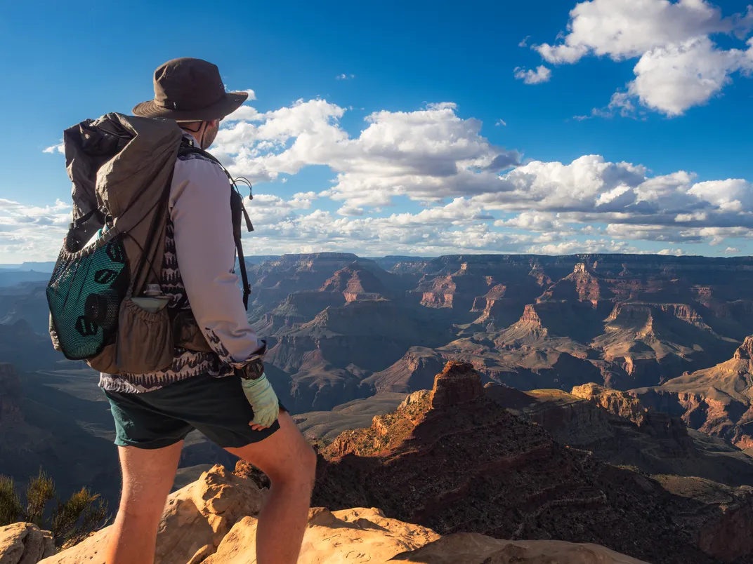 This photo depicts a lone hiker overlooking one of the great landscapes in America, the Grand Canyon. Millions of people visit this incredible place every year but less than 1% travel into the heart of it.
