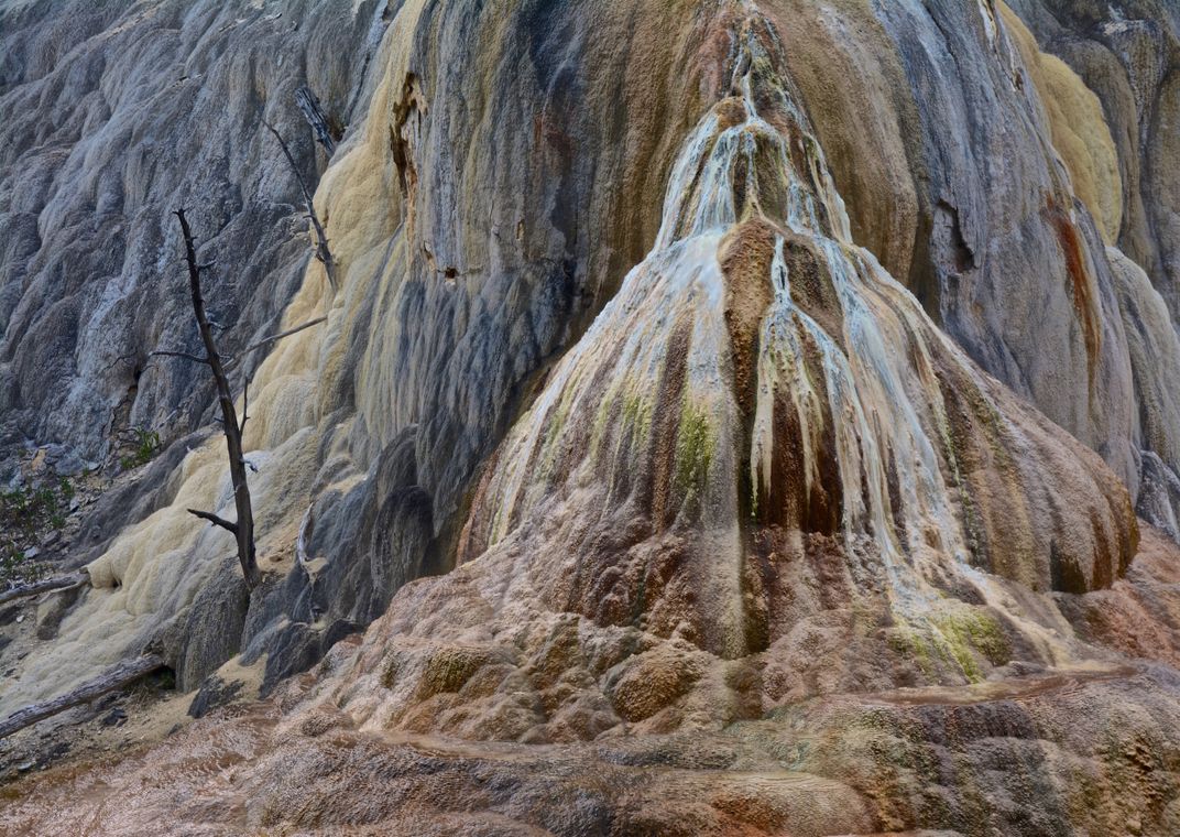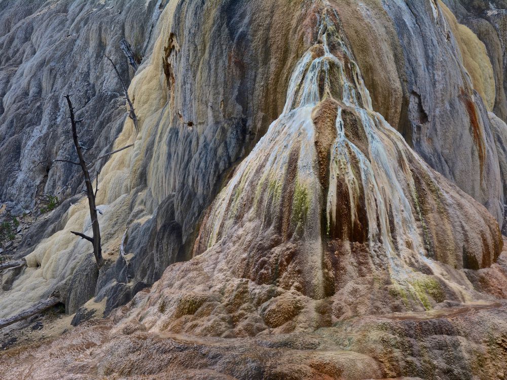An amazing natural formation of the Orange Spring Mound at Yellowstone National Park.