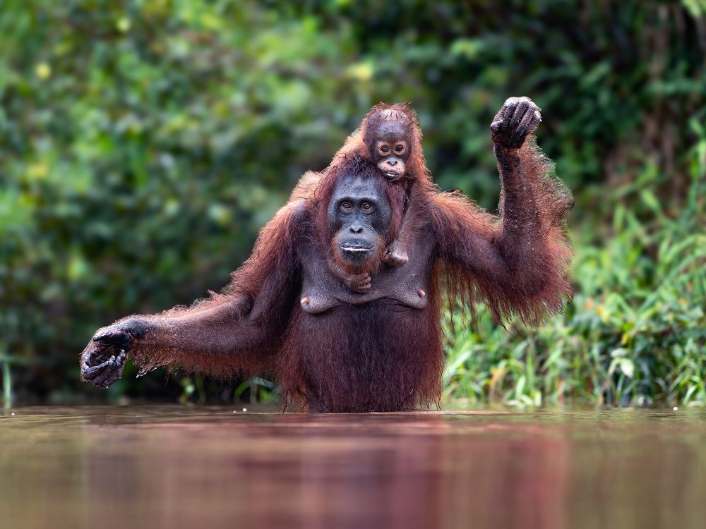 We were deep in the forests of Borneo, exploring the winding waterways in search of orangutans and the incredible birdlife that thrives along the riverbanks. On our third day, we came upon this mother orangutan carefully crossing a shallow river with her newborn clutched close to her chest. We cut the motor and sat silently, hoping she might glance our way. The tenderness in the way she held her infant—tiny fingers wrapped through her mother’s fur—was unforgettable. It was one of those rare, magical moments on the river where the forest reveals something truly special.