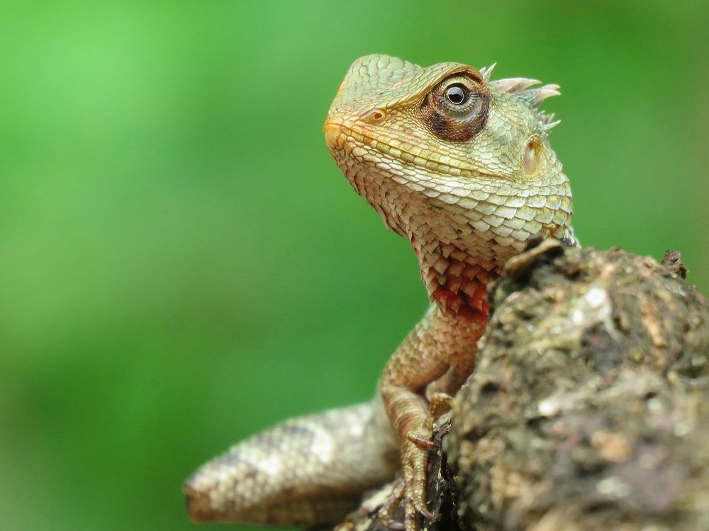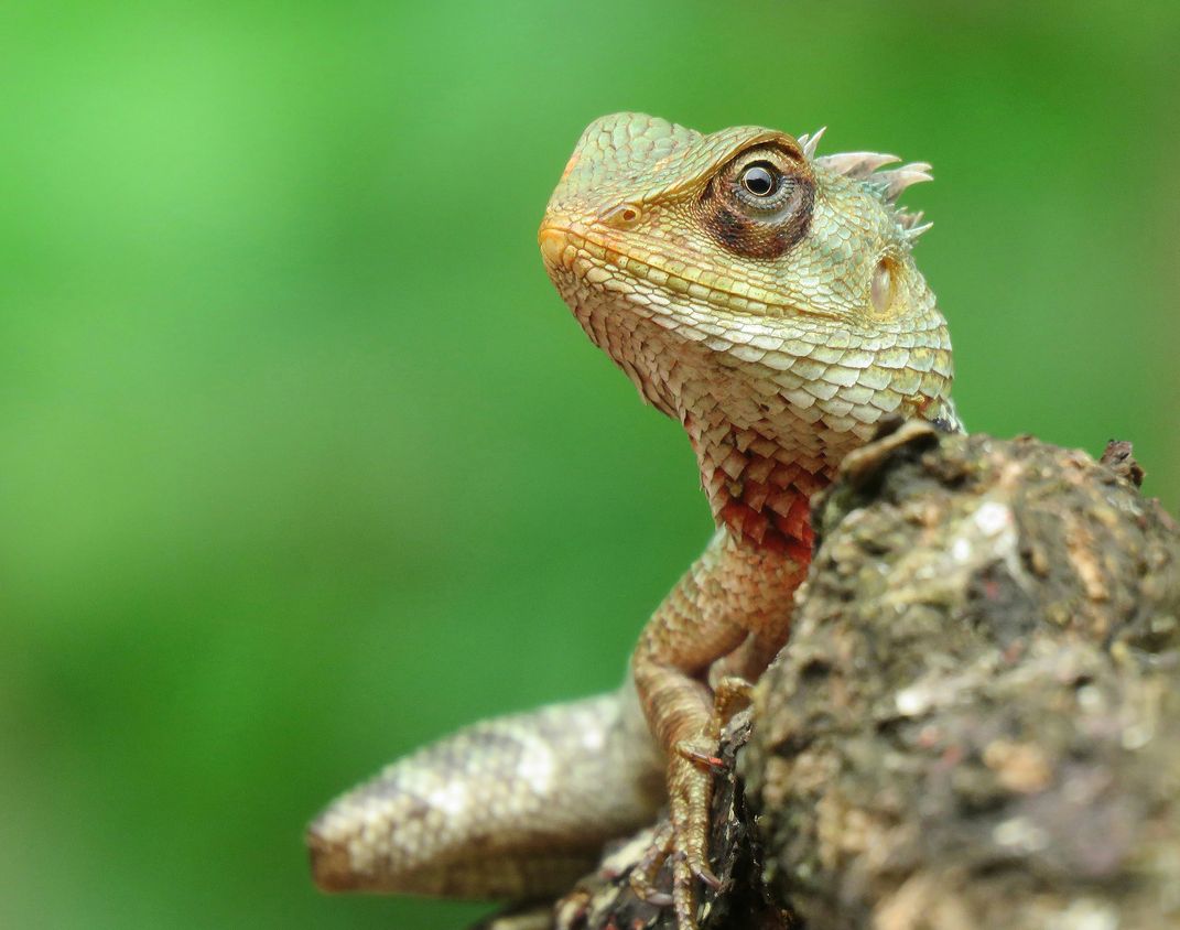 Godzilla- After a heavy downpour, the sky had just cleared and sun was shining bright when I happened to see this beauty sitting on a branch of a tree. The background was perfect green too.