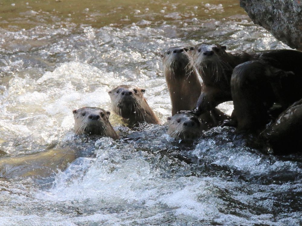 Otters stop for a photo opportunity on the Gibbon River in Yellowstone NP