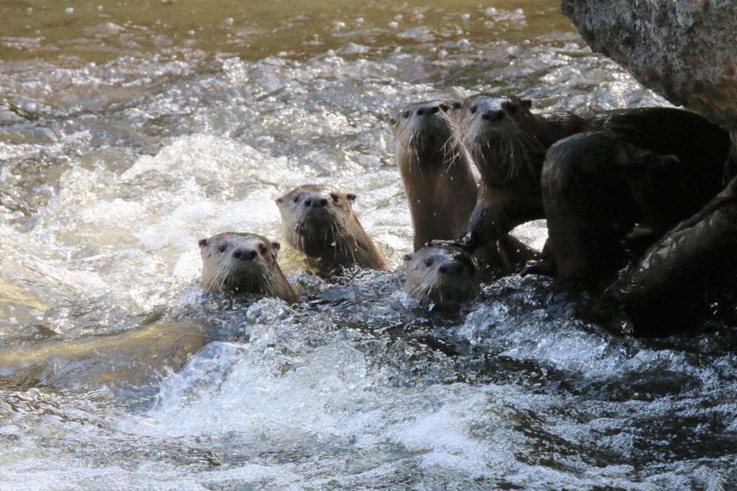 One moment in time. We went on a Otter search up the Madison and Gibbon rivers in Yellowstone during June 2019. Eventually, we found this group who were speeding up stream. All of a sudden, they stopped and gathered behind a rock in the middle of the river.