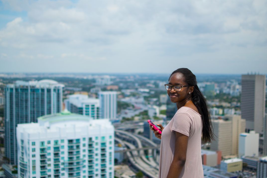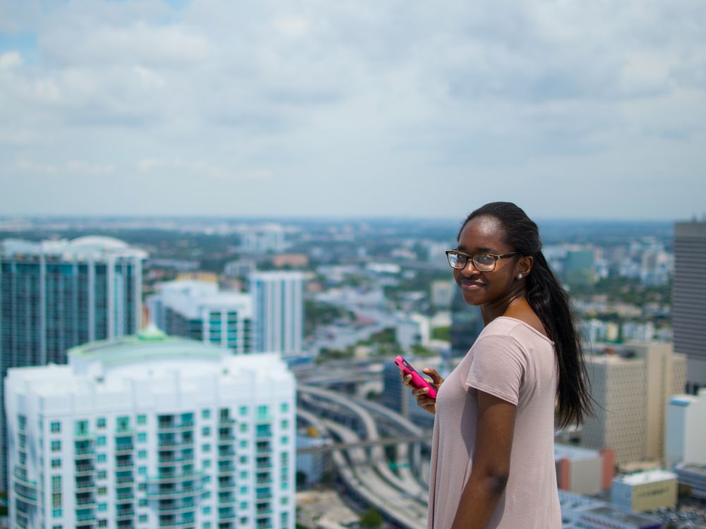 This photo is showing my friend overlooking the city of Miami from 52 stories above the ground. We had to take and elevator to the 14th floor and then climb stairs the rest of the way, by the time we reached the top, we were drenched in sweat, but it was all worth it for the amazing view.