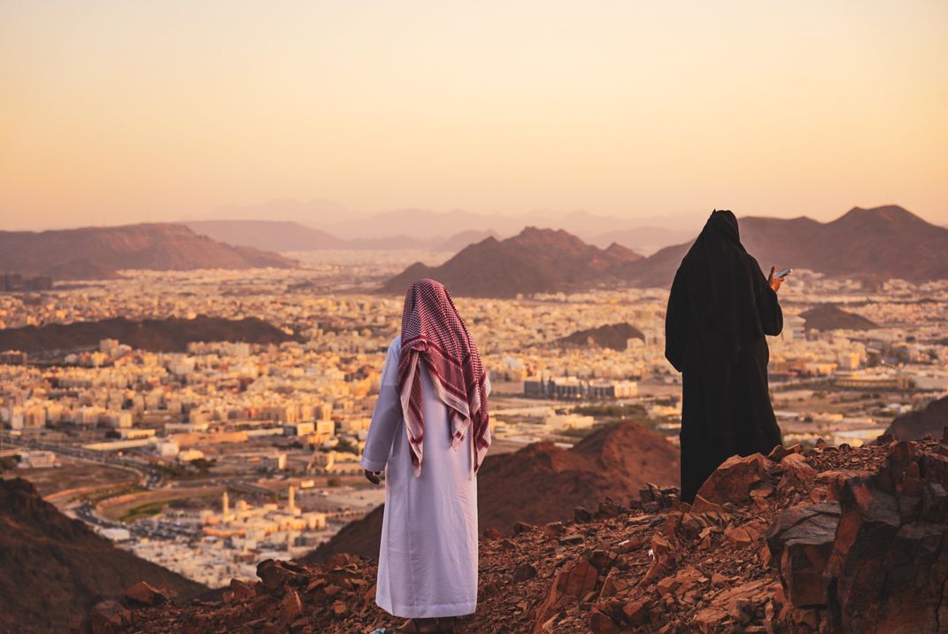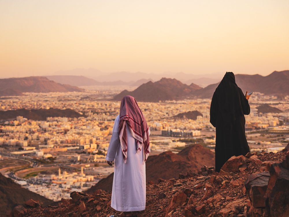 Two locals stand atop the rocky hills surrounding Medina as the city glows under the fading sunset. They stood on the hill that guarded the city, looking down upon the sacred city that protected their spiritual home.