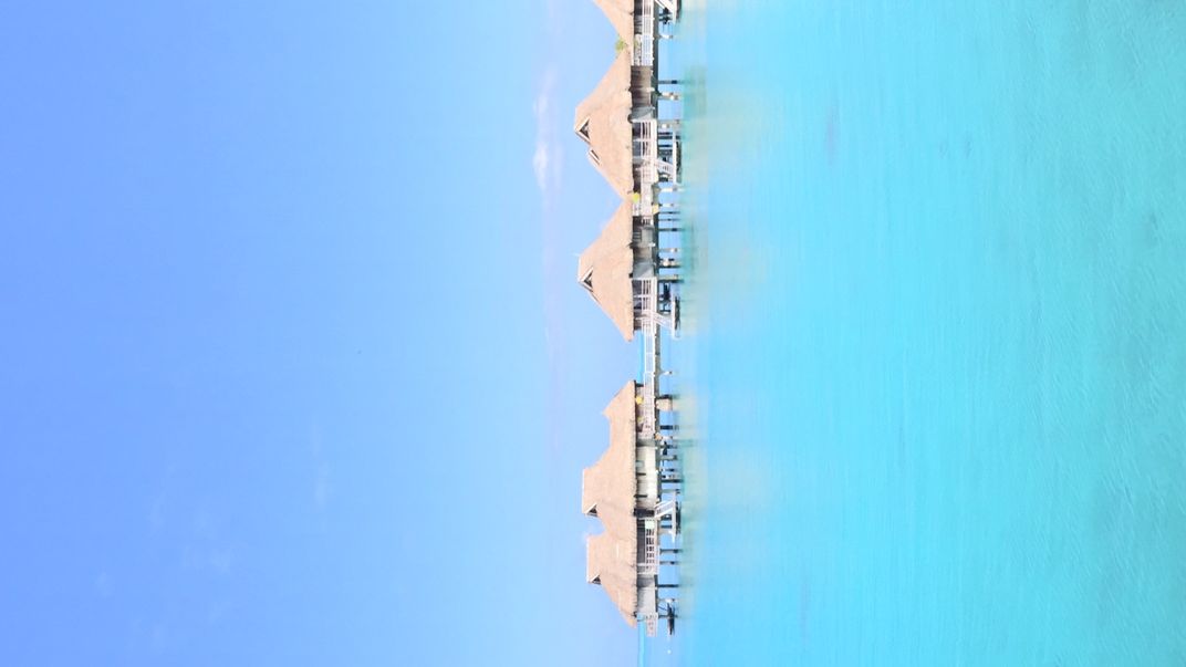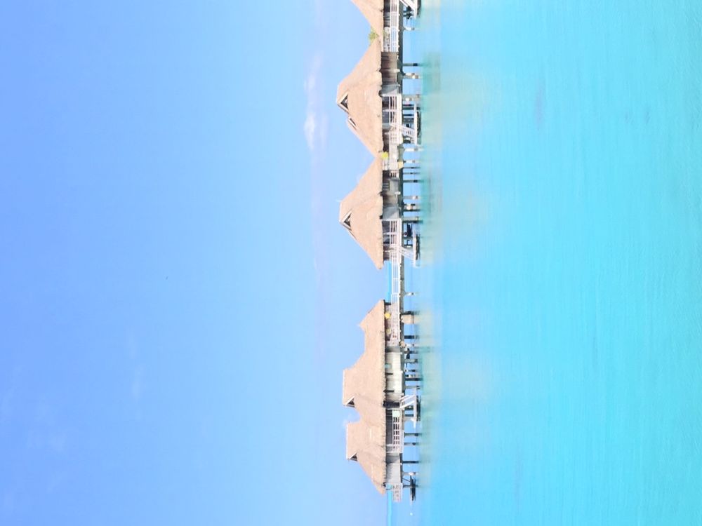 The photo was taken on an iPhone 5s. The image shows bungalows over the ocean.