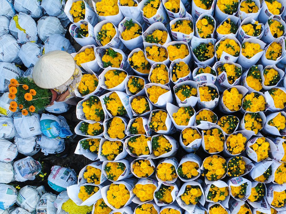 During this Lunar new year period , thousands of daisy flower are in full bloom at Sa Dec flower village. After harvesting , these flowers will be packed and will soon be transported by boats or trucks to other provinces in Mekong Delta area, HCM city, the central region, the central highlands, the north and even be exported to the neighbouring countries of Laos, Cambodia and China.