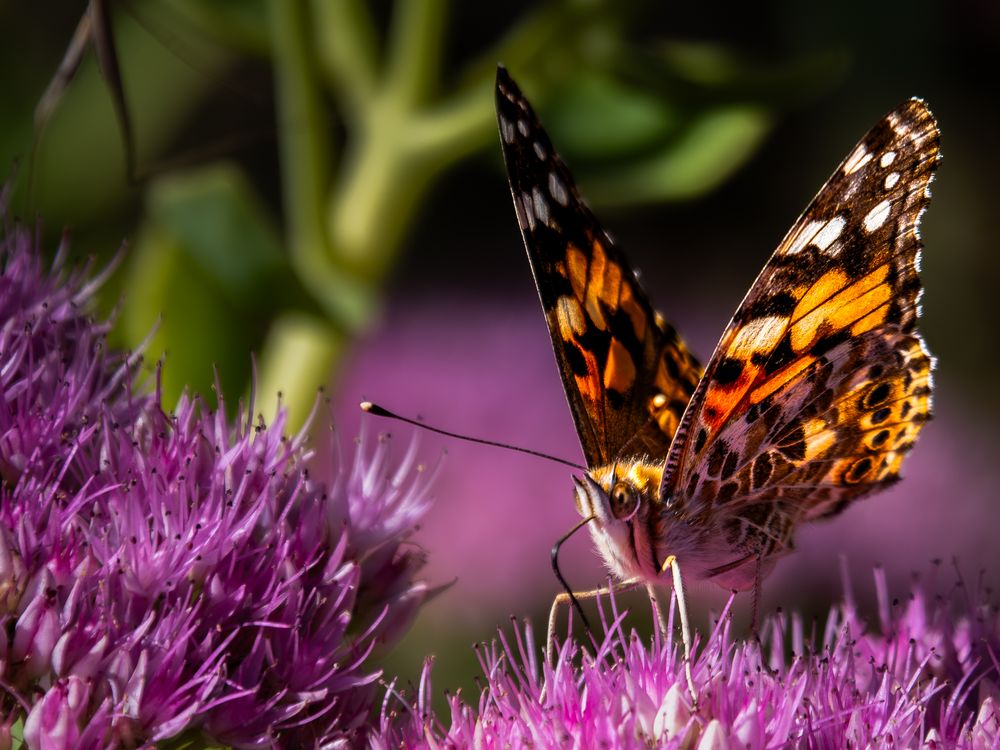 Spending the day in Picardy, Northern France, I noticed a dozen butterflies among the purple blossoms, feeding off the precious nectar with delight. The colors were beautiful on that nice September sunlight and I captured that moment in a Painted Lady butterfly's life.