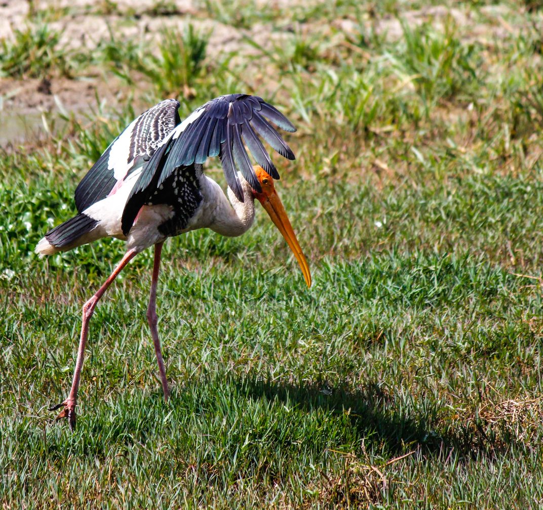 Painted Stork drying off with outstretched wings in Bharatpur Bird Sanctuary in Rajasthan, India