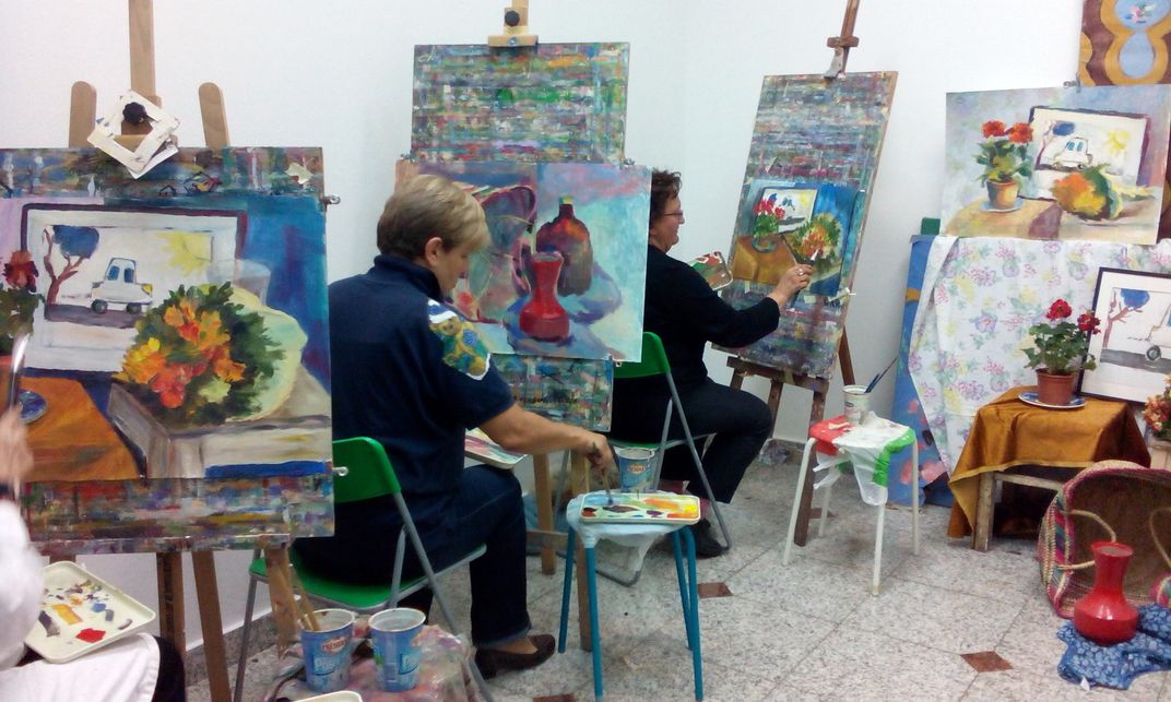 Colorful world of the painting workshop for adults.