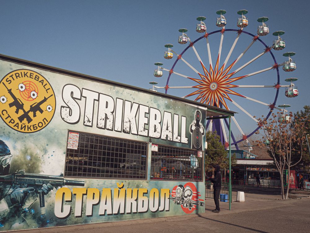 16/3 2025 Bukara Uzbekistan Ismail Samani Park Uzbekistan The Recreation Park still carries the atmosphere of the Soviet era: small entertainment buildings in a “Russian” style, old Cyrillic signs, and simple concrete and metal rides. Created through the transformation of an ancient cemetery into a public space, the park tells the story of memory layered with leisure. Today, the Ferris wheel and retro pavilions are not just relics of the past, but symbols of continuity: for young Uzbeks, who live between modernity and tradition, they represent a bridge between eras — a place where the city reveals itself from different perspectives, weaving together history and the present.