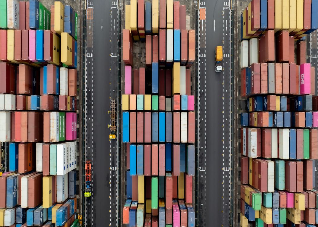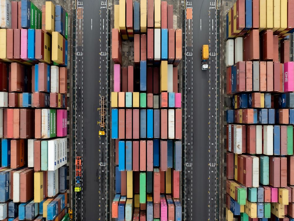 Pasir Panjang Port buzzes with industrial energy, serving as one of Singapore’s busiest gateways for global trade. From a drone’s top-down perspective, the port transforms into a vibrant mosaic of colourful shipping containers neatly stacked in precise grids. Trucks weave through the lanes below, adding dynamic movement to the structured landscape.