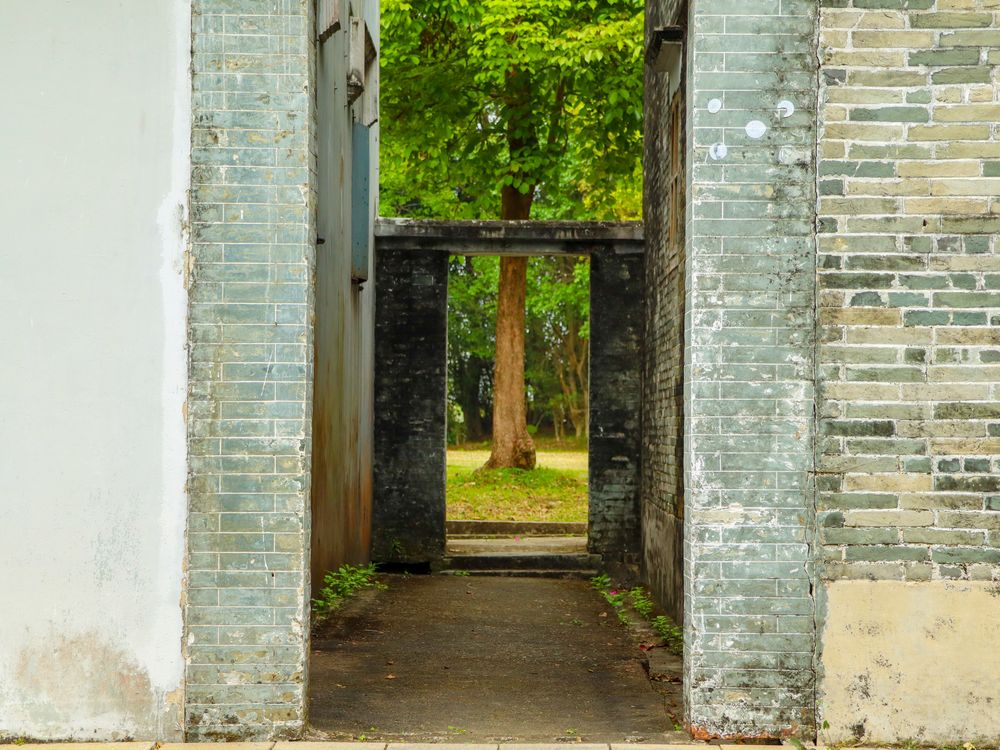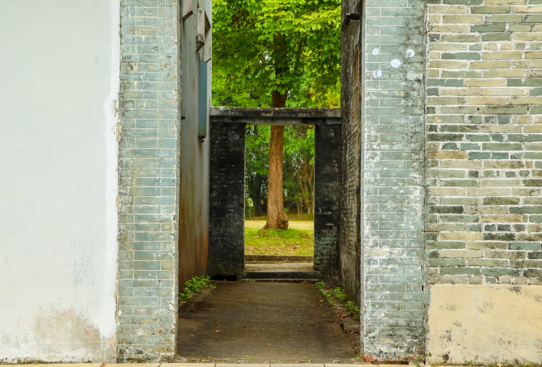 Through the narrow passage of timeworn walls, a vibrant tree greets every visitor — a quiet reminder that life endures beyond decay.