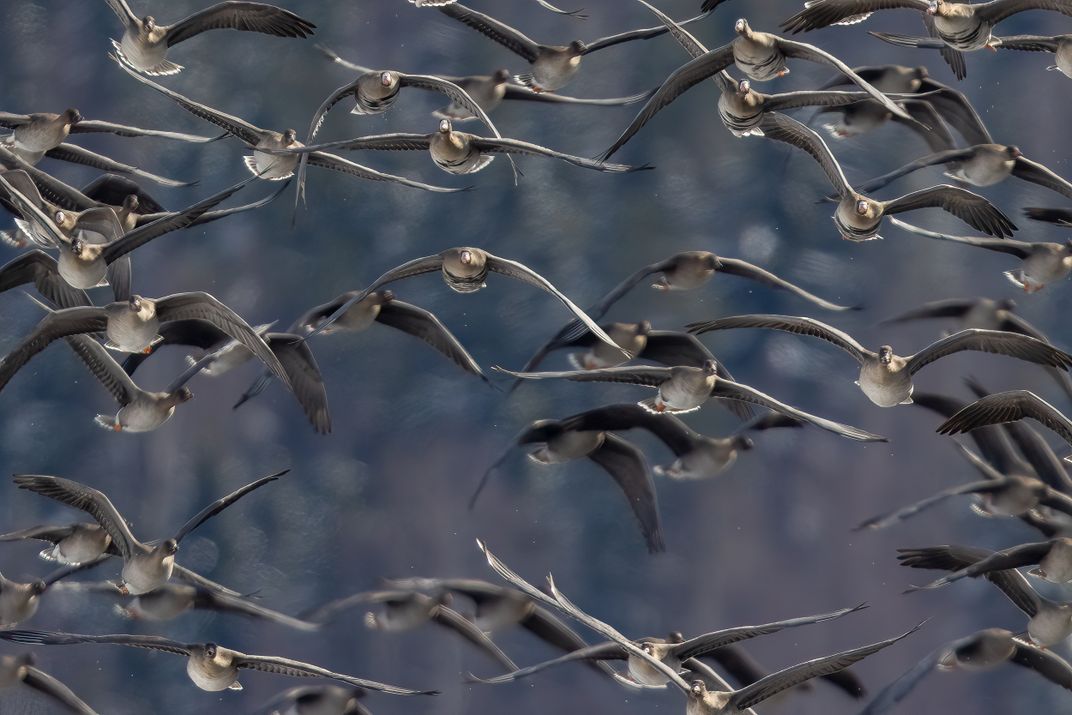 Bean Goose and Greater White-fronted Geese had come to a known rest field on their way north until Siberia.